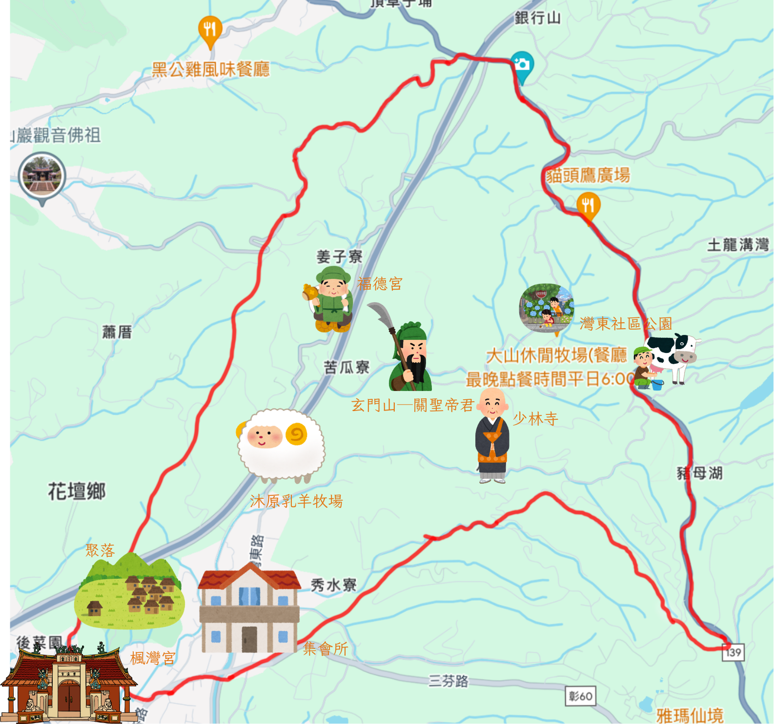 社區有鄉公所所媒合之特色課程帶動鄰里活動,觀光農場為親子旅遊之必經之地,結合畜牧業及餐廳,有許多特色之牧場體驗及相關製品。